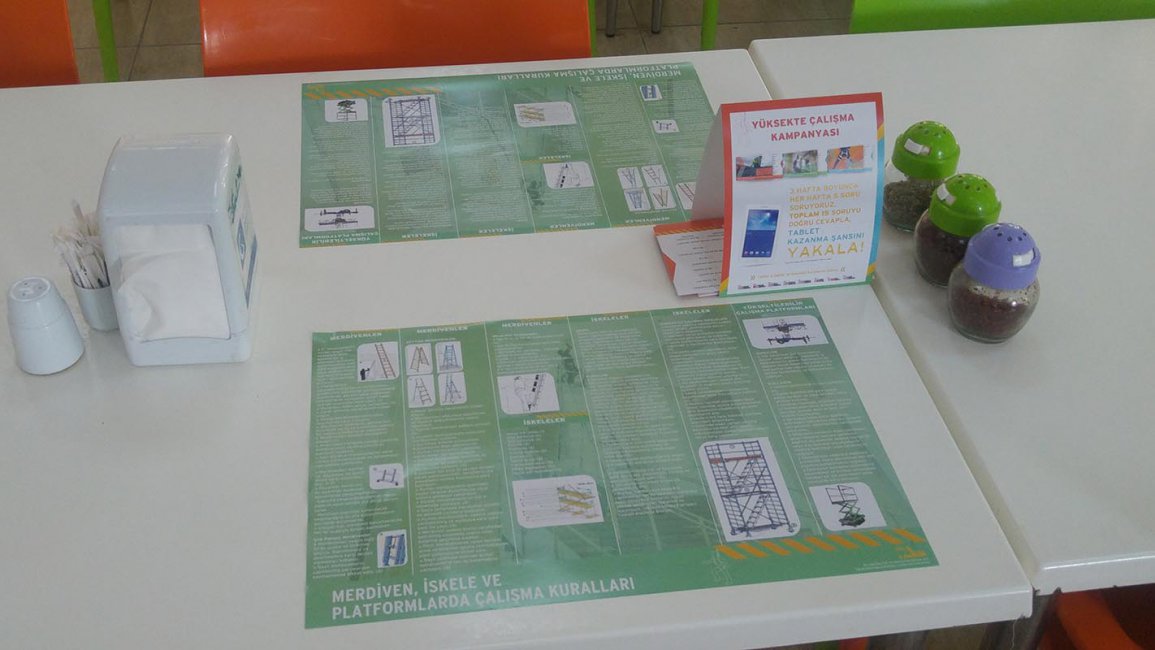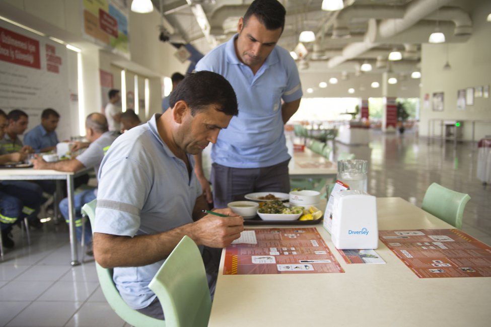 İşletme içerisinde bulunan ve çalışanların aşina oldukları ve kanıksadıkları fiziki alanları ve objeleri (yemekhane, dinlenme alanları, duvarlar, kapılar, masalar, tuvaletler, tepsiler vb.) amacımıza yönelik birer arayüz olarak kullanıp yarışma ve ödüllerle motivasyon sağlıyoruz.